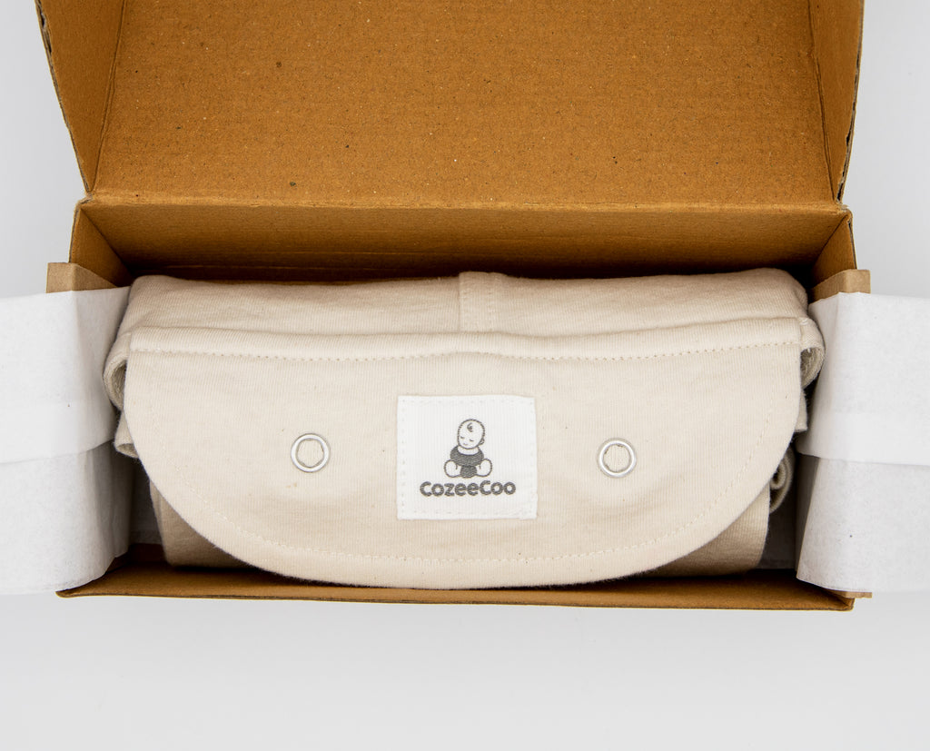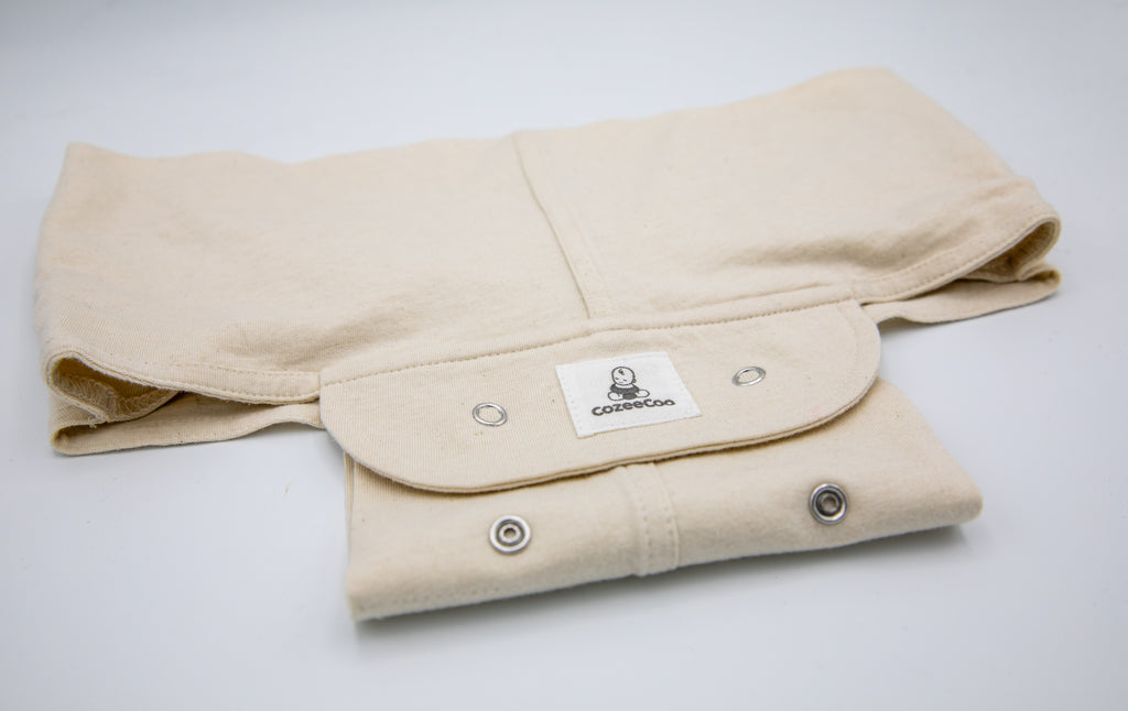 The CozeeCoo® is a wearable baby blanket and medical device, which supports: comfort, safe sleep -even when rolling, muscle and motor skill development, easy diaper changes, car seat safety, and helps prevent tampering with skin irritations, healing sites and medical devices.